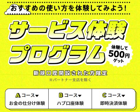 サービス体験プログラムで500円をもらう