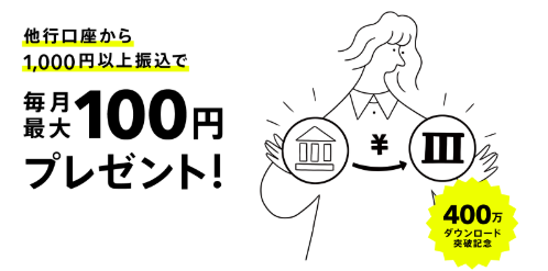 振込入金プログラムで毎月100円もらえる