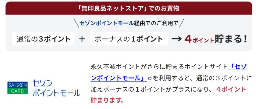・セゾンポイントモール経由で無印良品ネットストアの利用で4倍!!